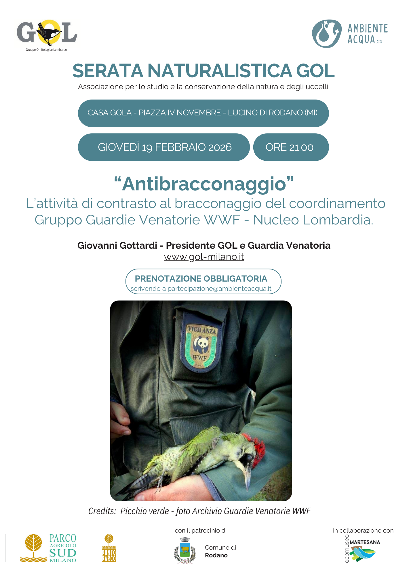 Serata naturalistica per conoscere l’attività di contrasto al bracconaggio del coordinamento Gruppo Guardie Venatorie WWF – Nucleo Lombardia.