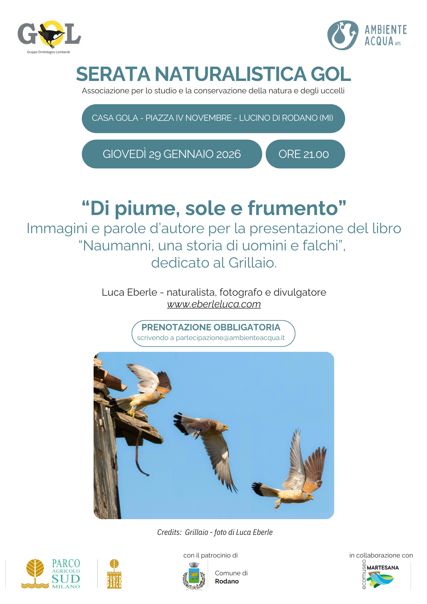 Serata naturalistica con presentazione del libro “Naumanni, uana storia di uomini e falchi“, dedicato al grillaio.